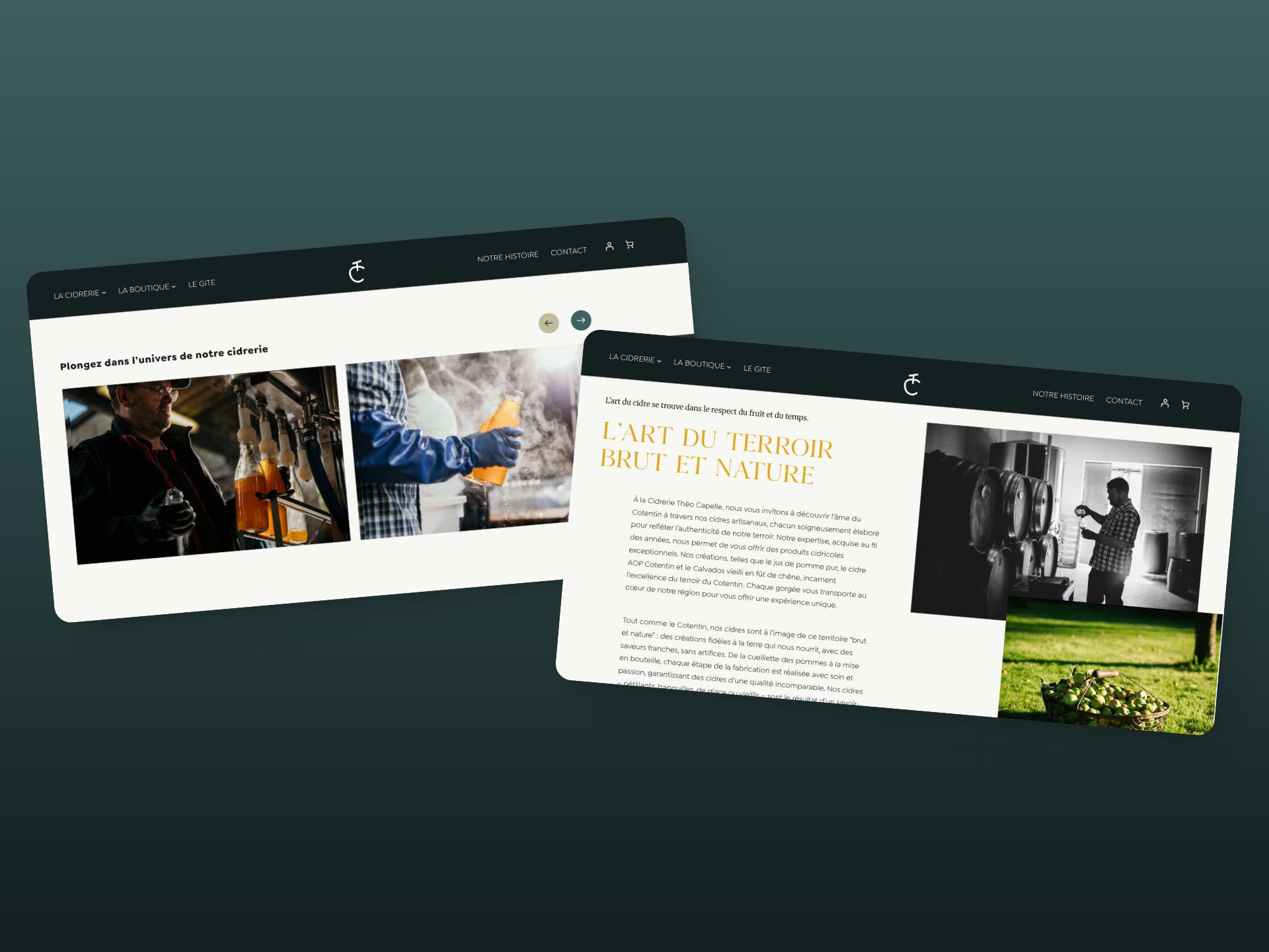 Installée au cœur du Cotentin, la cidrerie Théo Capelle perpétue un savoir-faire artisanal reconnu en Normandie. Connue pour ses cidres, jus de pomme et Calvados AOC, la maison a souhaité moderniser son image en ligne tout en conservant son authenticité.